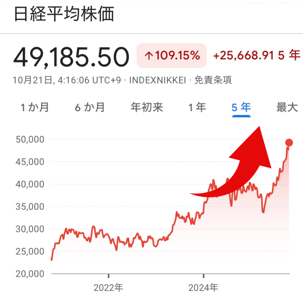 高市新総裁の誕生により、日経平均株価が大幅に上昇しています。